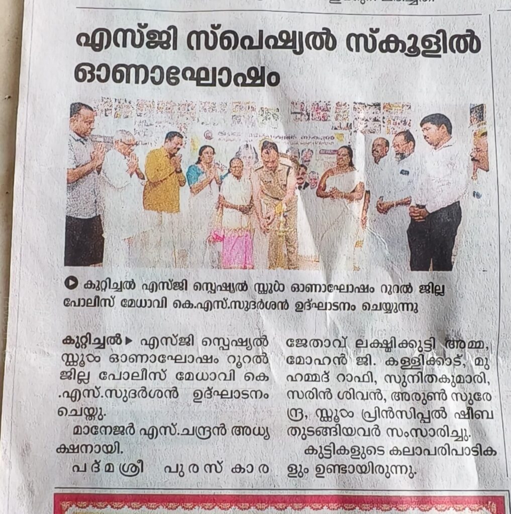 S.G. Special School is a school for the mentally and physically challenged children. This Special School is managed by S.G. Charitable Society (Reg.No.T717/1999). Government of Kerala has also recognized the school and given annual grant towards running expenses of the school. The special school enable, encourage and empower mentally and physically disabled children, most of them hail from poverty stricken inner tribal settlements of Agastyar Koodam hill range.